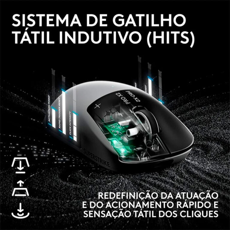 🔥 Mouse Gamer Sem Fio Logitech G PRO X2 SUPERSTRIKE LIGHTSPEED, 61 g, Cliques Táteis Personalizáveis, USB-C, Preto e Branco – 910-007775
